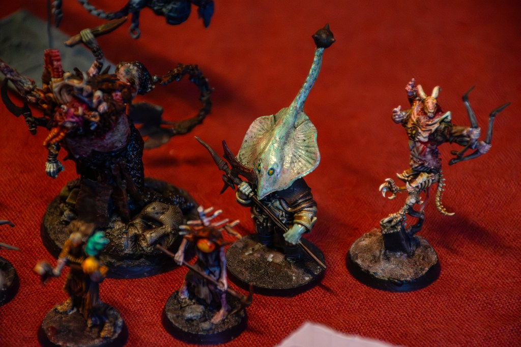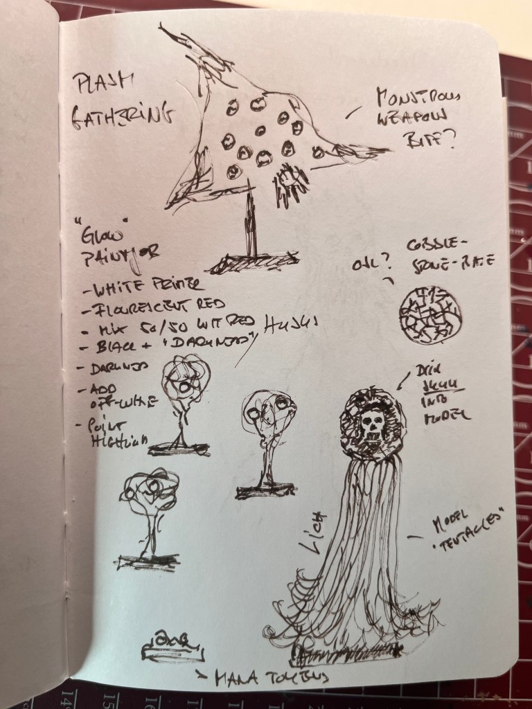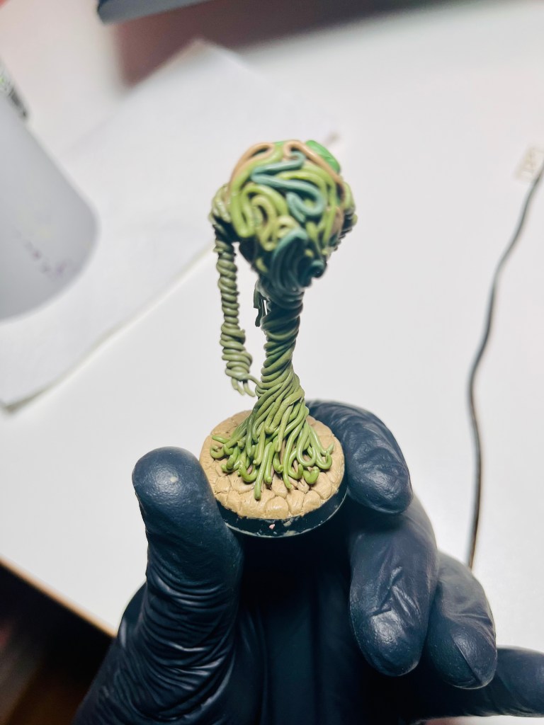 I wanted to create a plasm gathering conveying an eldritch horror vibe. The feeling you get from taking the wrong turn in Elden Ring and getting beat up by some dungeon boss and its retinue. Giving the “ghostly” warband a corporeal form that still defies any logic. This vague idea collided with some minis I purchased off of Keira (@keira.kreations) at Kamping Kitbash last year.